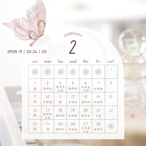 2月のスケジュール。。。 インスタにはアップしてたんですが、 なぜかブログの更新を忘れていました💦 2月もお休みは日曜日と祝日。 営業時間は19:30から24:00です。 今月も皆様のお越しを心よりお待ち 申し上げております♡シェアする